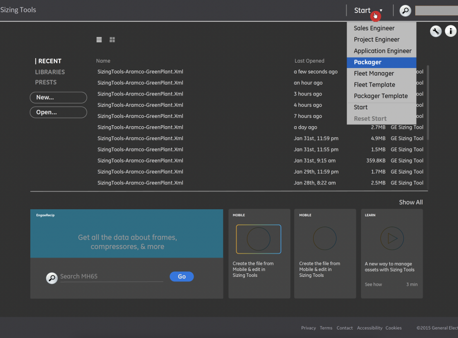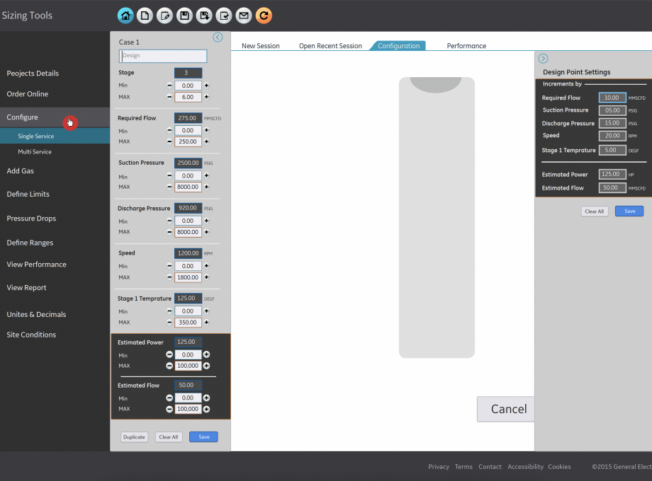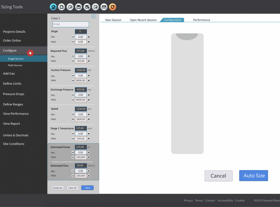 GE Reciprocating Compressors’ quick sizing tool. With engageRecip, you can quick select your compressor for your application from your smart phone/mobile device. engageRecip provides you the ability the frame that is required based on your suction pressure, discharge pressure and flow. The tool determines, the model, stroke, speed, stages required, horsepower and cylinder bore diameter at the touch of your fingertips. You can save the results, email the results to yourself or to GE for further review.